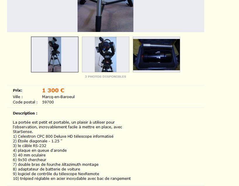 le détail , selon les photos , un Celestron CPC DELUXE 800HD ( valeur neuve : 2780€)