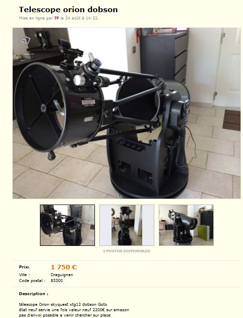 Rien que le titre de l'annonce est déjà une invitation au rêve "Téléléscope made etx90".