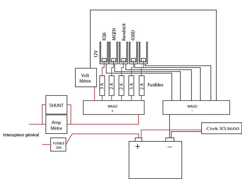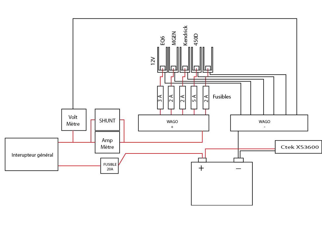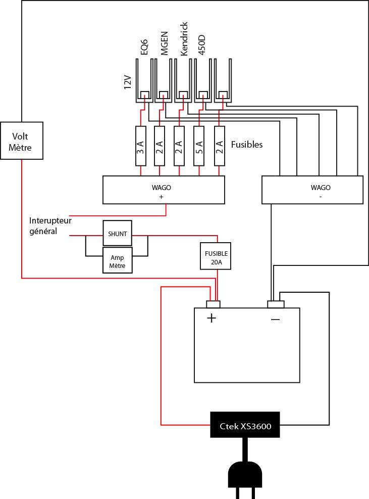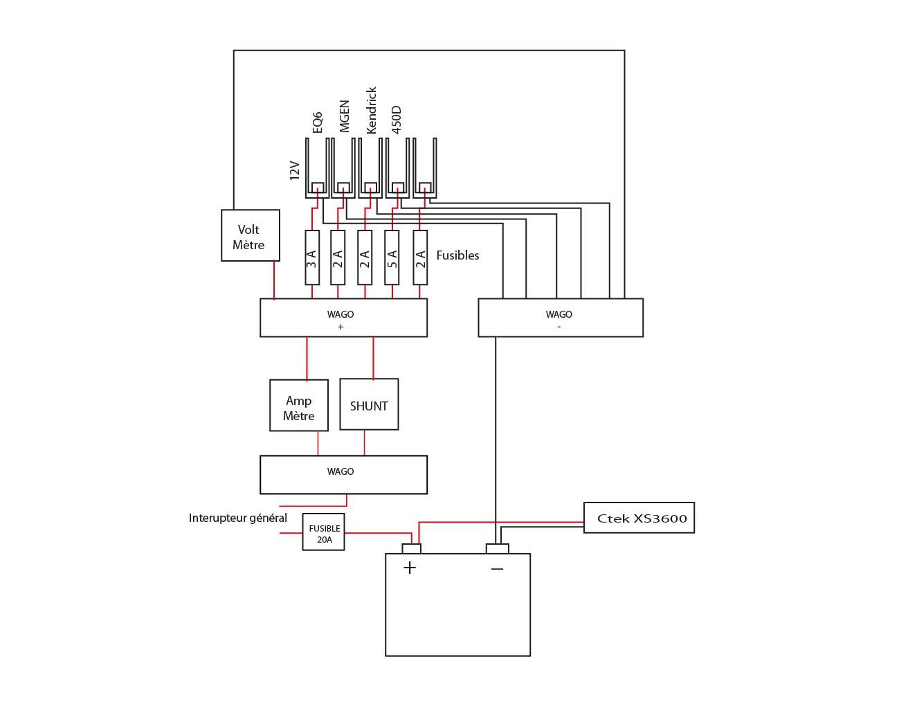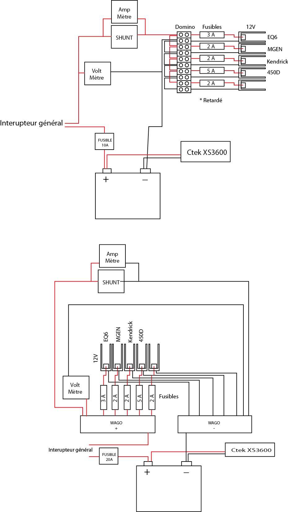 Une pour les 12V a travers les wago, avec l'AM+Shunt en amont