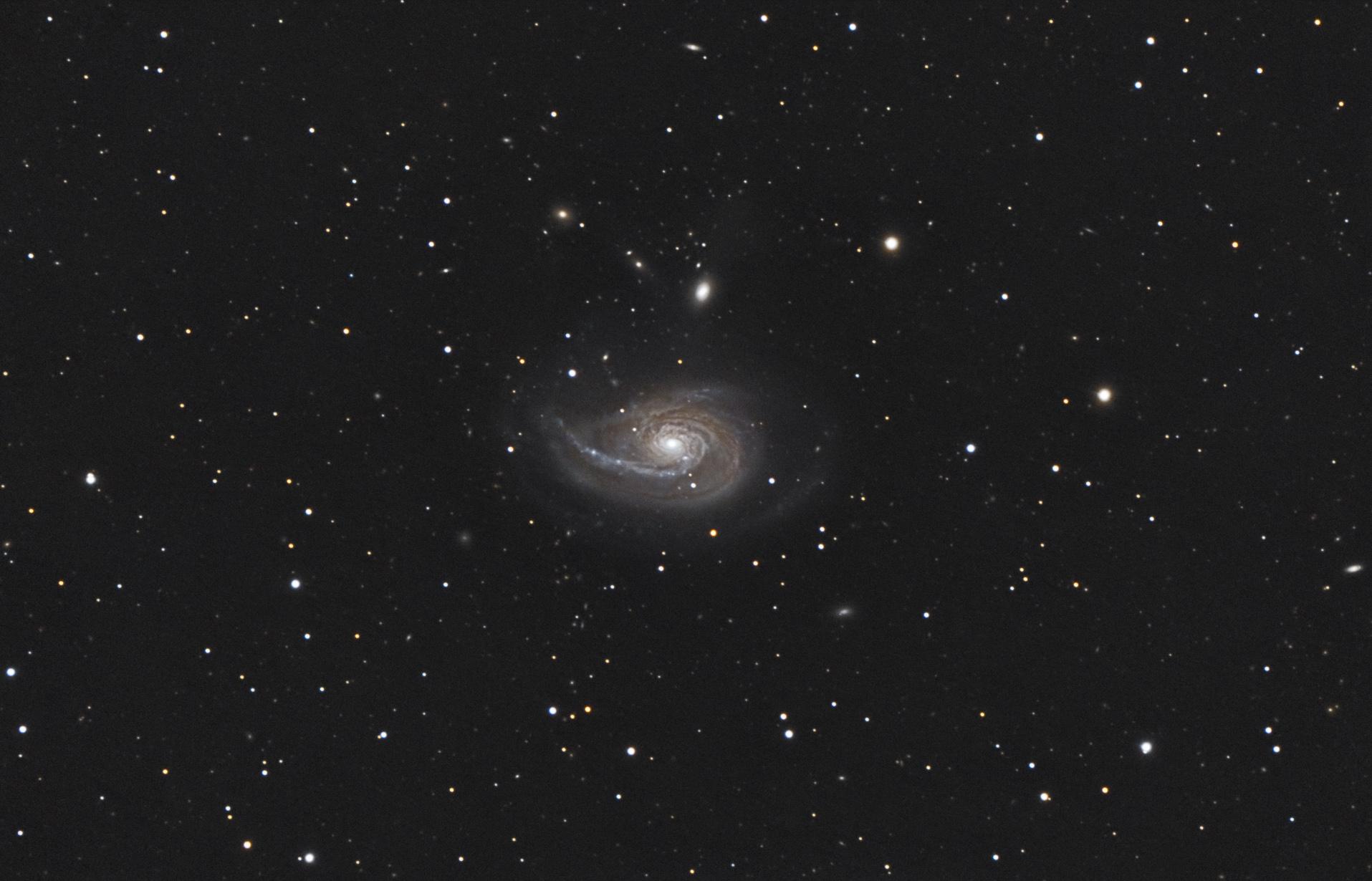 Il s'agit de NGC772, une spirale assez particulière avec des bras spiraux du même coté. l'image est le résultat de 30 poses de 10 min au foyer du C14 à F/D11 soit 6h de pose totale. voici un petit crop à 100% pour une mise en bouche: