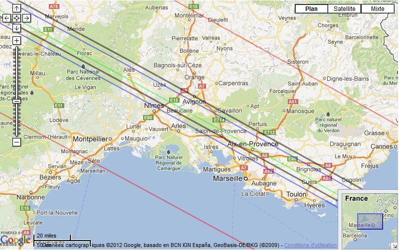 Je parle bien de la bande d'incertitude de Romulus, mesurée sur les cartes retransmises par Euraster (c'est le logiciel qui sert aux occultation rasantes, a priori, un double clic donne la distance à l'axe).