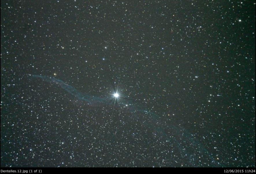 Ensuite, photo de M57 plus un test en one shoot sur les dentelles du cygne. J' ai poussé a 4min et le résultat est là. Je la vois, certes pas de couleurs, mais je la vois belle et bien.