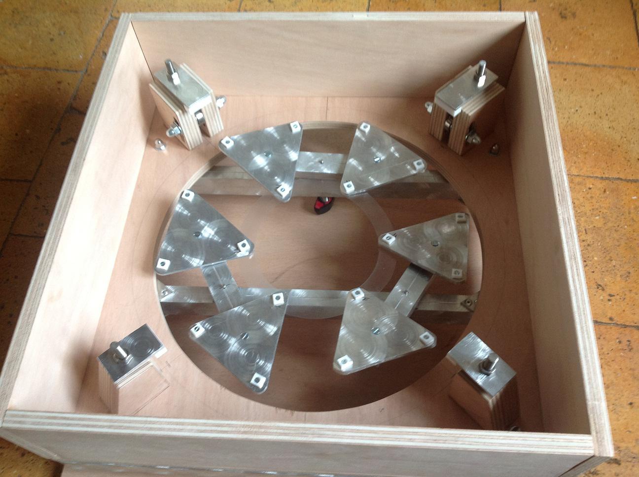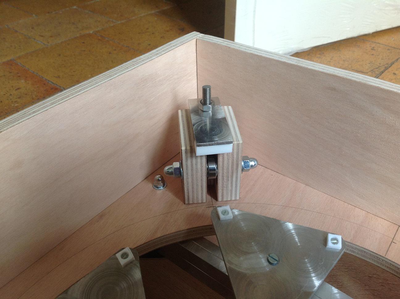 Une question me vient à l'esprit: quid d'une bille enchâssée dans le bois à la place du roulement ? Car après tout deux cylindres ne se touchent qu'en un point s'ils sont orthogonaux non ?