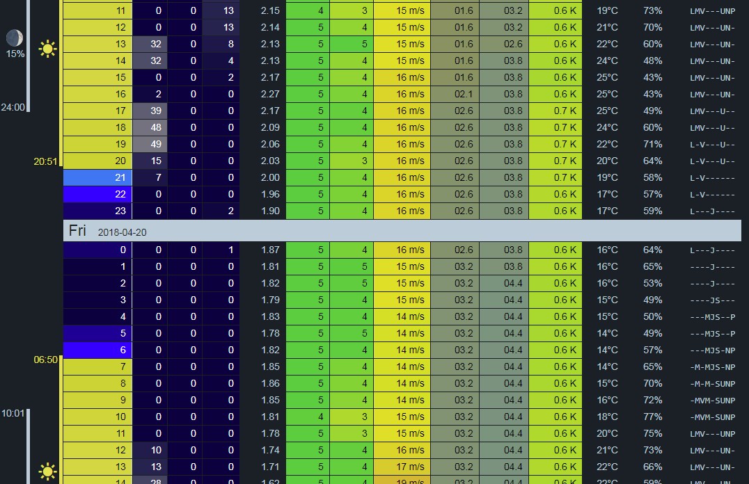 17:00 18 °C 18 Nord-Nord-Est : 14 ° 10 -- -- 65 % 1015 hPa Mitigé