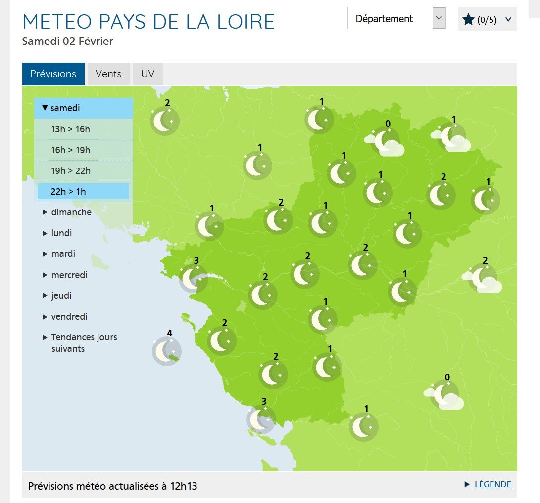 Et ce soir LE MIRACLE je pense : tous les sites météo annoncent clair de façon uniforme ! Pas un nuage depuis ce matin et l'on peut d'ores et déjà je pense se réjouir de monter le Dob en rentrant du boulot, sans craindre un coup de Murphy normalement ...Je pense que ça n'était pas arrivé depuis cet été !! 😁😊