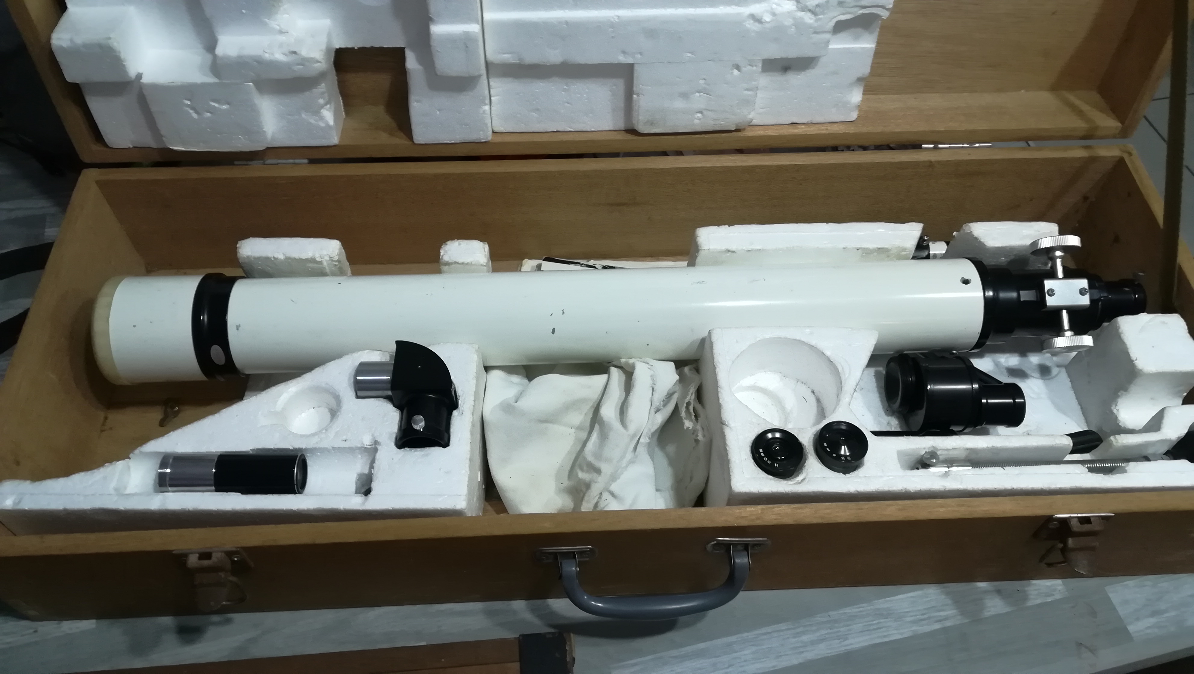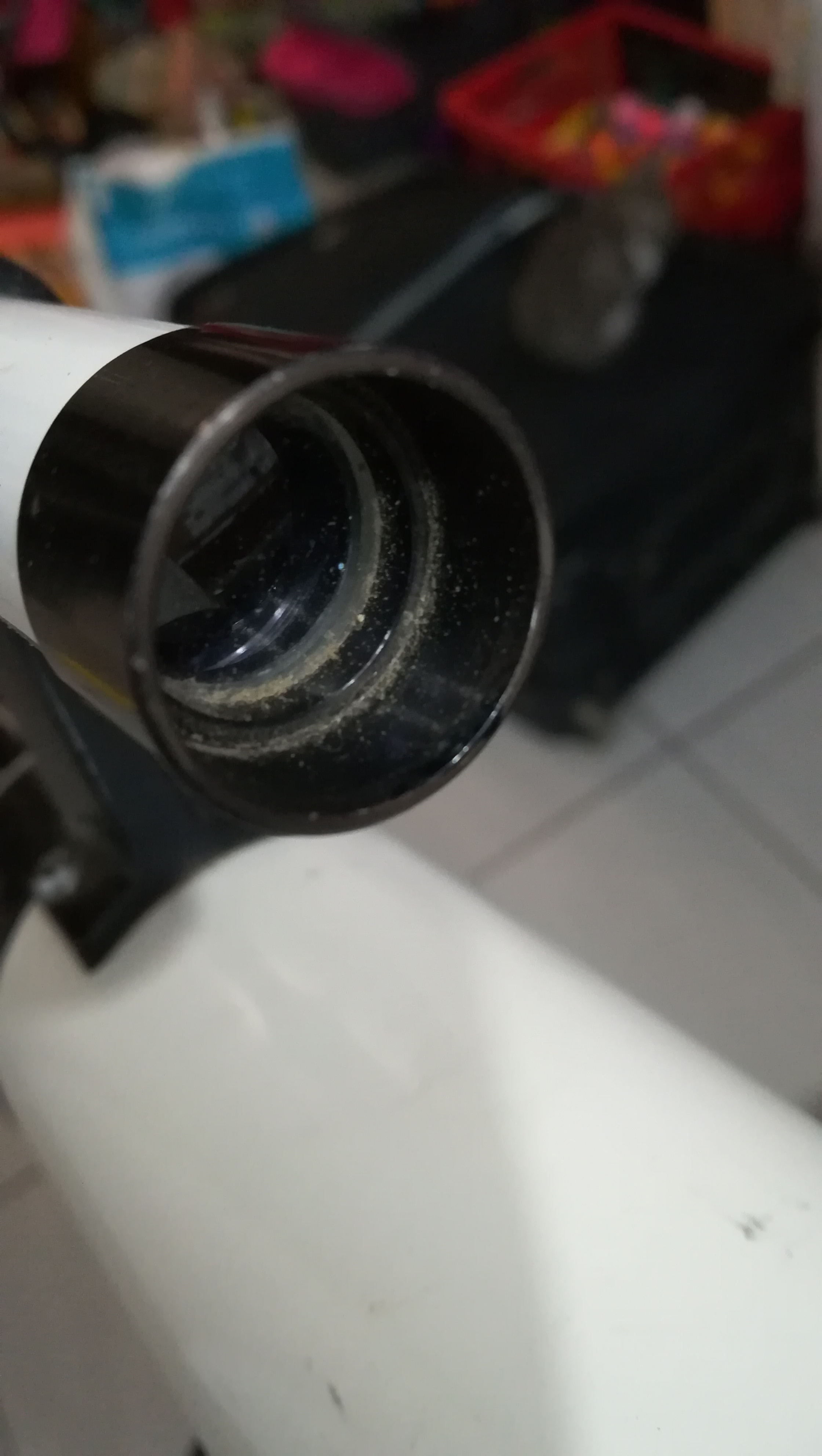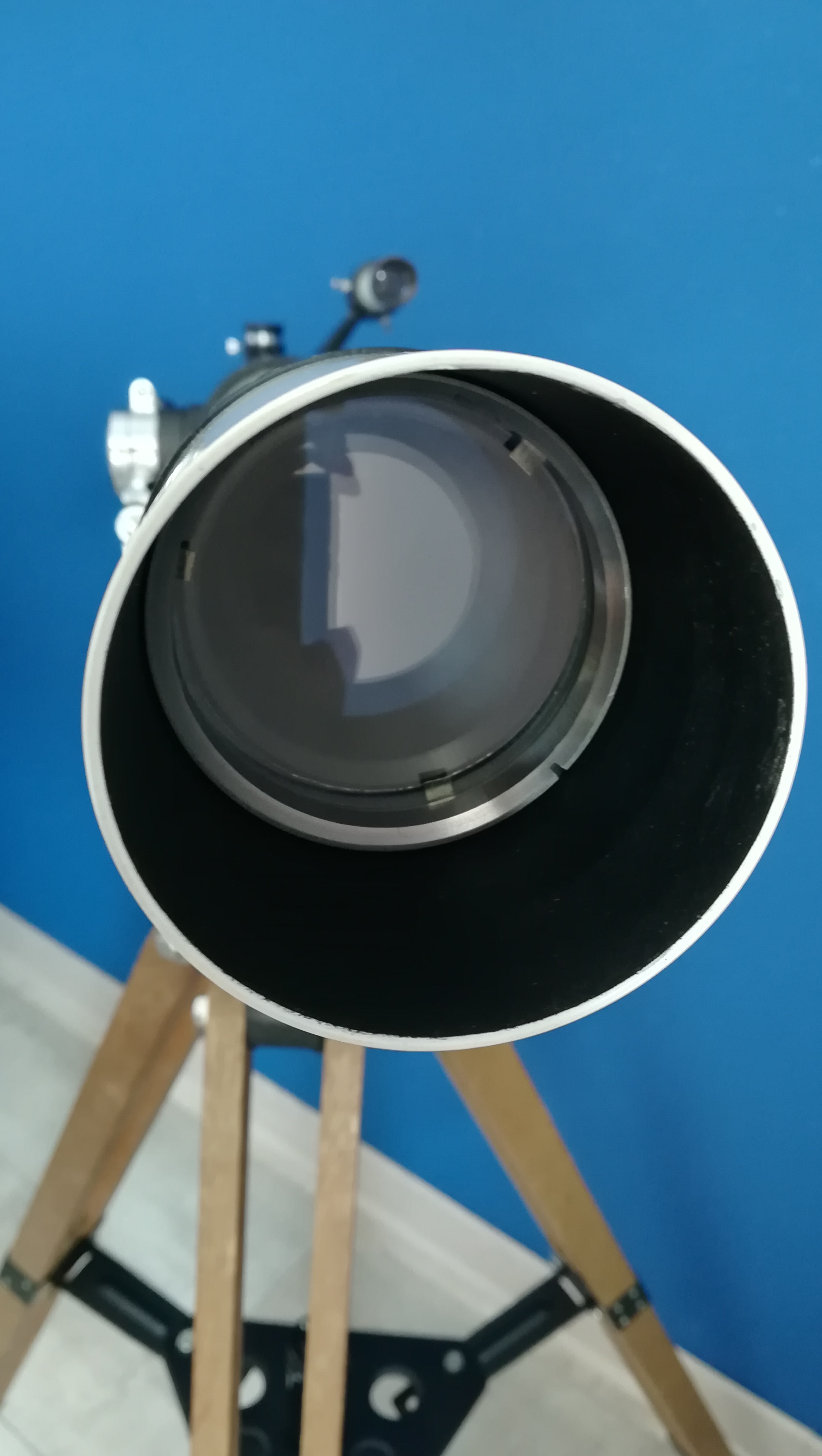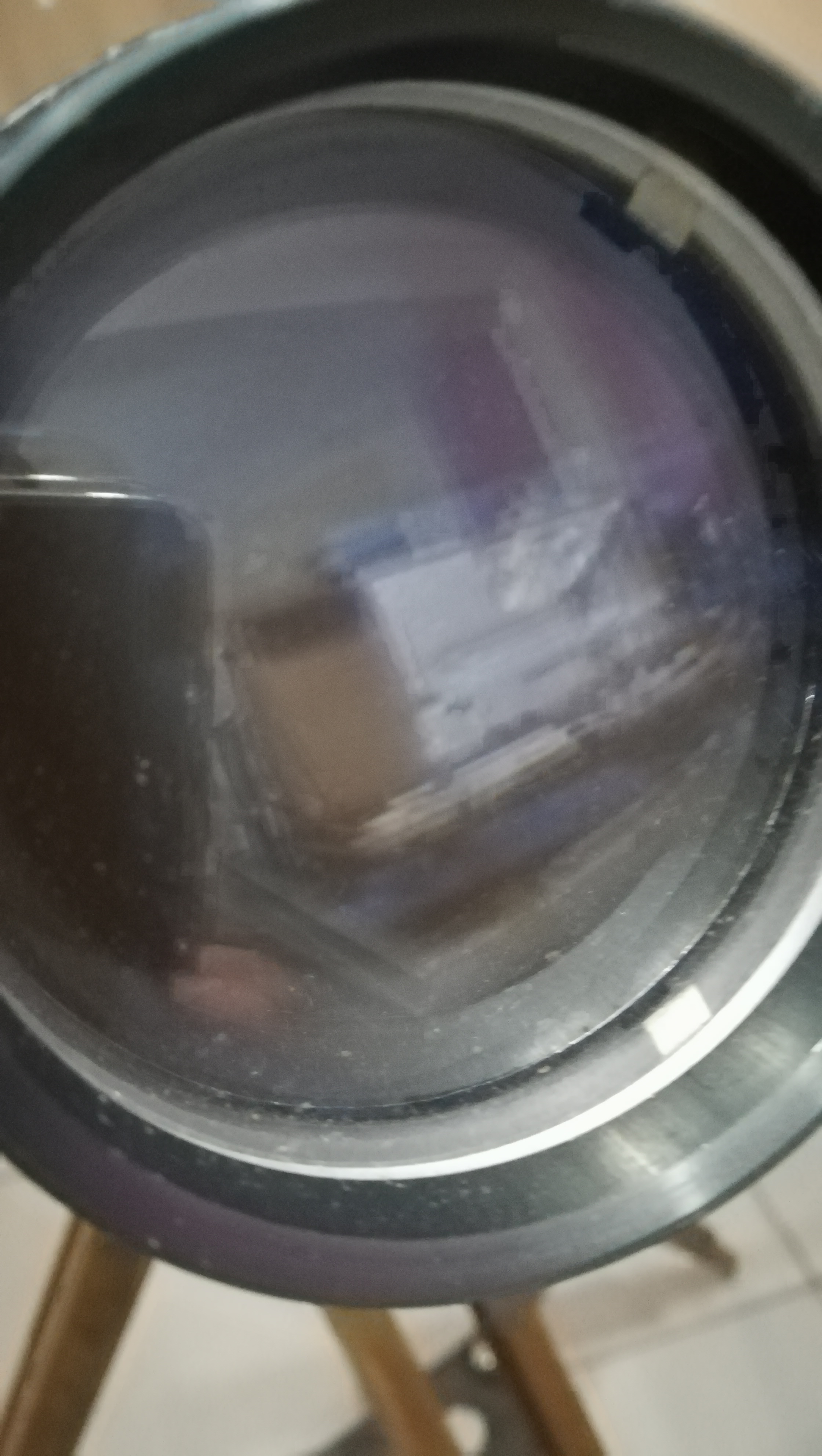 Je la trouve superbe, dommage pour le tube, il est pas mal abîmé mais pour le coup j'ai peur d'y toucher. Tous les morceaux en métal ont été poncé puis peint. Il y avait beaucoup de rouille à divers endroits... La lentille est plutôt clean c'est un bon point. Les oculaires étaient cradles même entre les lentilles. J'ai réussi à les avoir aussi.