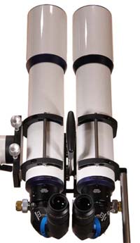 J'ai possédé de telles jumelles. Leur poids de 22kg les rendent intransportables dans leur caisse et difficiles à installer sur la monture. Tenir à bout de bras les 22kg pour les faire passer entre la fourche de la monture et faire coïncider les queues d'aronde relève du tour de force. Donc elles sont restées le plus souvent dans leur coffre et ont trouvé un nouveau proprio.
