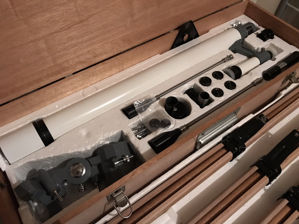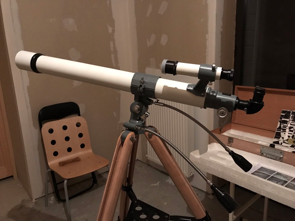Alors elle a été révisé en septembre 1997 chez PERL à VICHY,  mais pas de date d'achat si ce n'est une page du N°135 de ciel et espace  avec une croix dessus comme pour indiquer le modèle que la personne voulait.