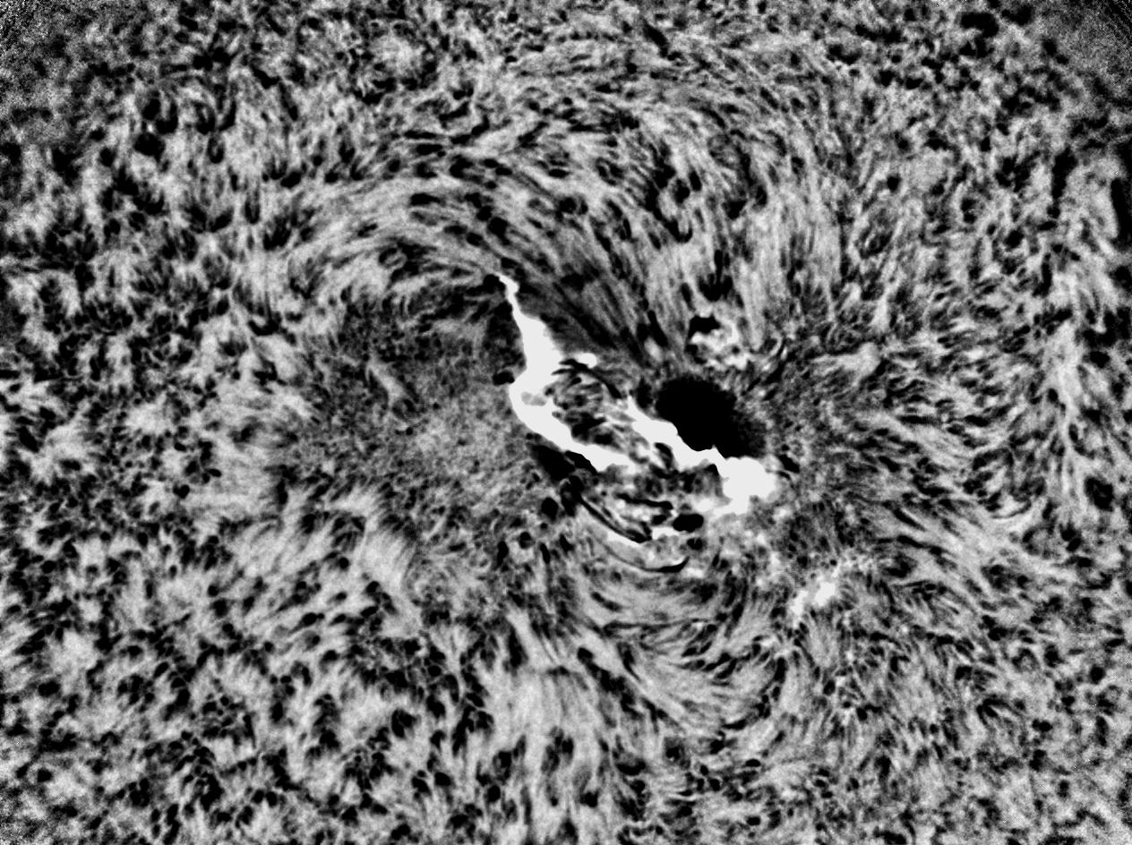 un exemple en 2 photos solaires faite avec une qhy5l-II couleur , c'est le même AVI mais AS2 en mode couleur pour la première , en mode monochrome pour la seconde.