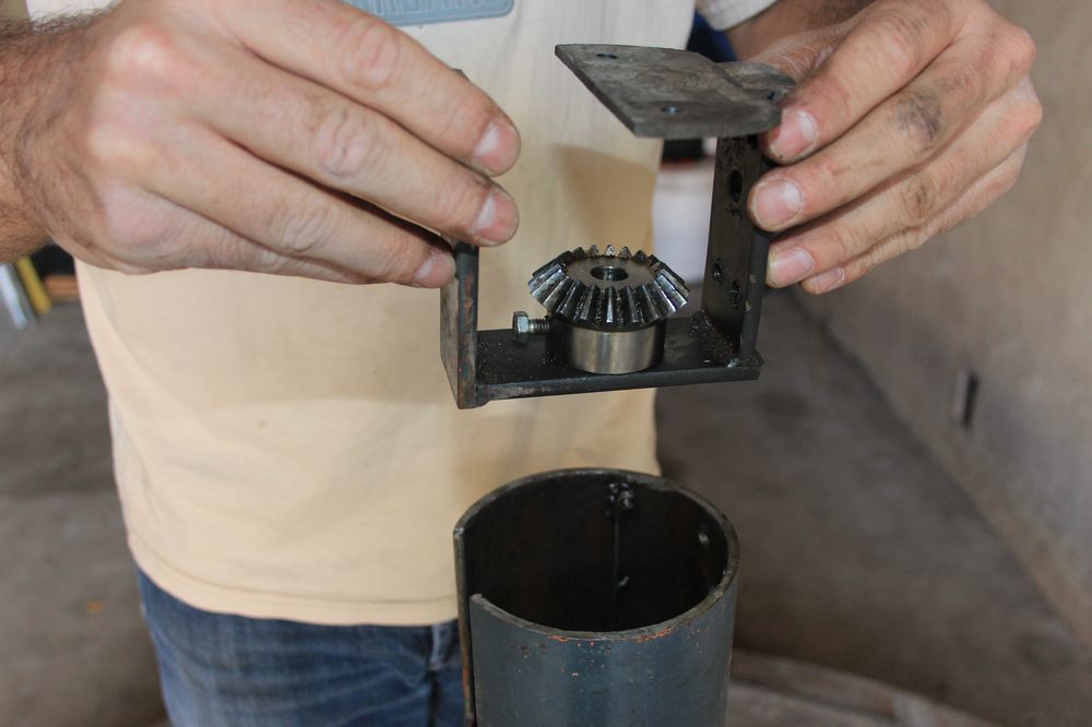 Et bien à bloquer un second tube à l'intérieur du premier qui descend jusqu'au sol. Un triangle muni de 3 pointes repose alors au sol.