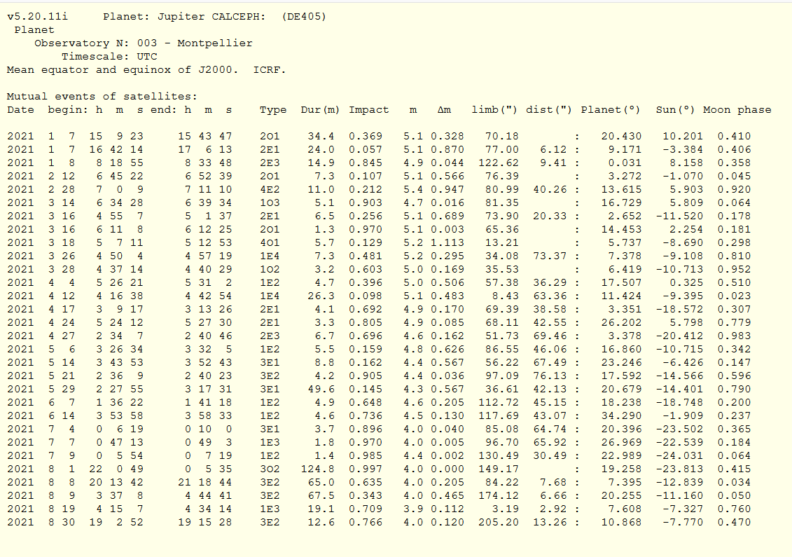 Bientôt une nouvelle série de "phémus" des satellites de Jupiter.