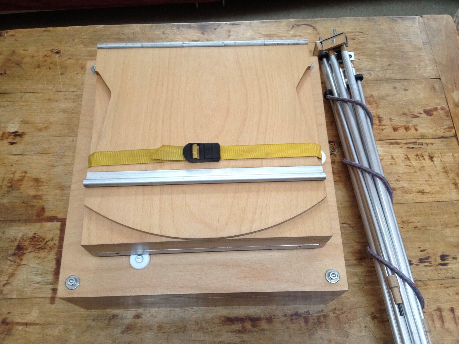 J'ai dessiné du robuste en CP hêtres de 10 mm ce qui au dessin m'amenais à 20 Kg avec les tubes (21 kg au final)