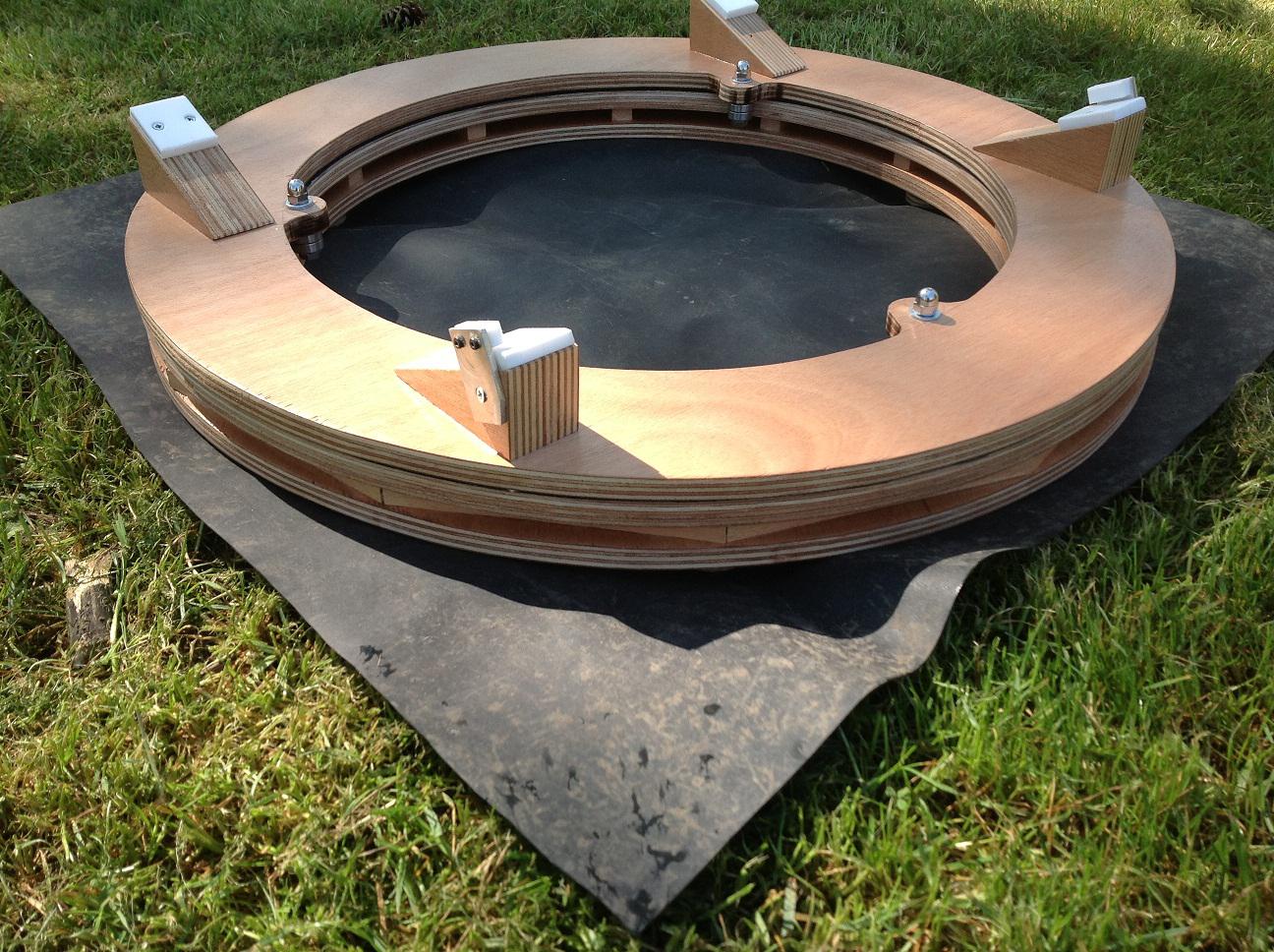 Le seul soucis de ce truc, c'est qu'il faut monter les patins sur pivots... vu que le rayon de courbure change, l'inclinaison des patins doit changer selon la hauteur pointée. Je sais bien que l'on peut faire des patins petits et négliger ce problème, mais c'est pas propre.......