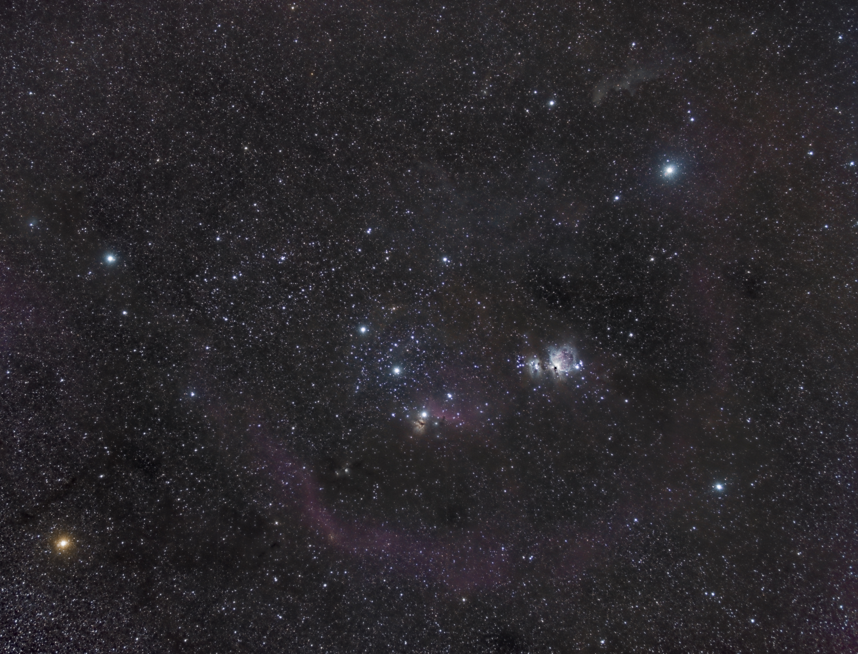 La difficulté a été de retirer tout ce gradient, ce voile lumineux, pas évident. Tu perds forcément les faibles signaux avec un tel ciel. J'ai fini avec GradientXterminator sous Photoshop