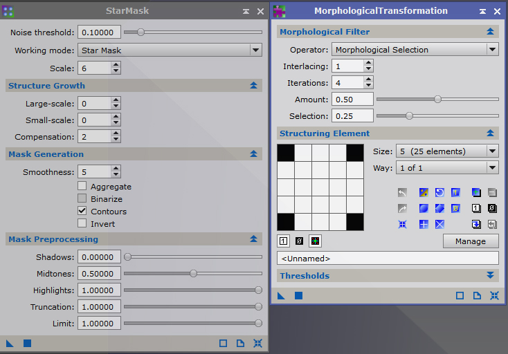 Il faut un bon masque d'étoiles et ensuite avec le MorphologicalTransform tu réduis en douceur avec ces paramètres :