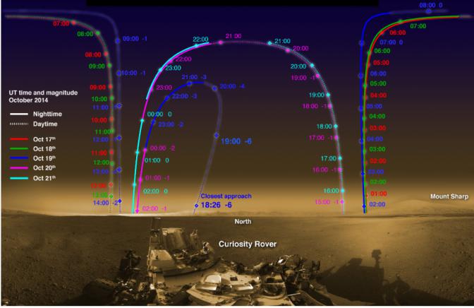 La Comete Siding Spring, officiellement nommée C/2013 A1, a été découvert le 3 janvier 2013, par l'observatoire de Siding Spring en Australie. À l'époque, il était plus loin du Soleil que Jupiter est. Des observations ultérieures ont permis aux scientifiques du JPL et ailleurs de calculer la trajectoire de la comète suivra en décrivant un arc autour de Mars. Des observations en 2014 vont continuer à affiner la connaissance de la trajectoire de la comète, mais de manière approximative. Le noyau de Siding Spring viendra aussi proche près de Mars que d'un tiers de la distance entre la Terre et la lune.