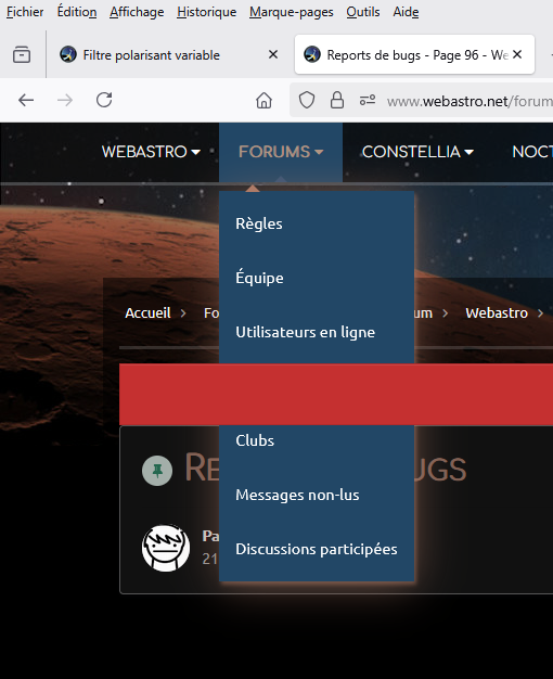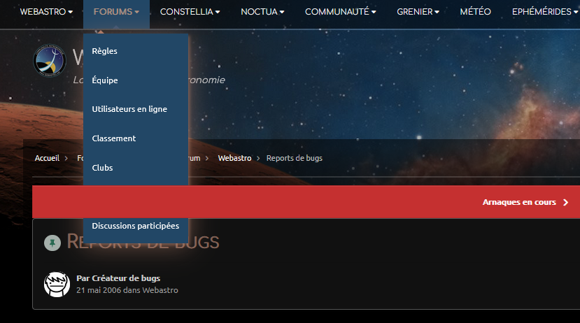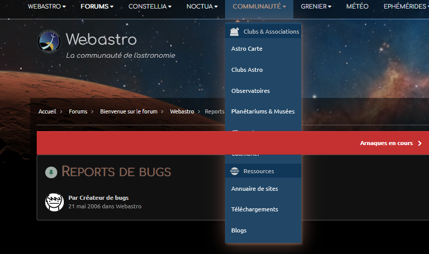 Webastro a beau être le meilleur des forums de l'univers, ces petits êtres horribles appelés bugs peuvent subsister en certains endroits...