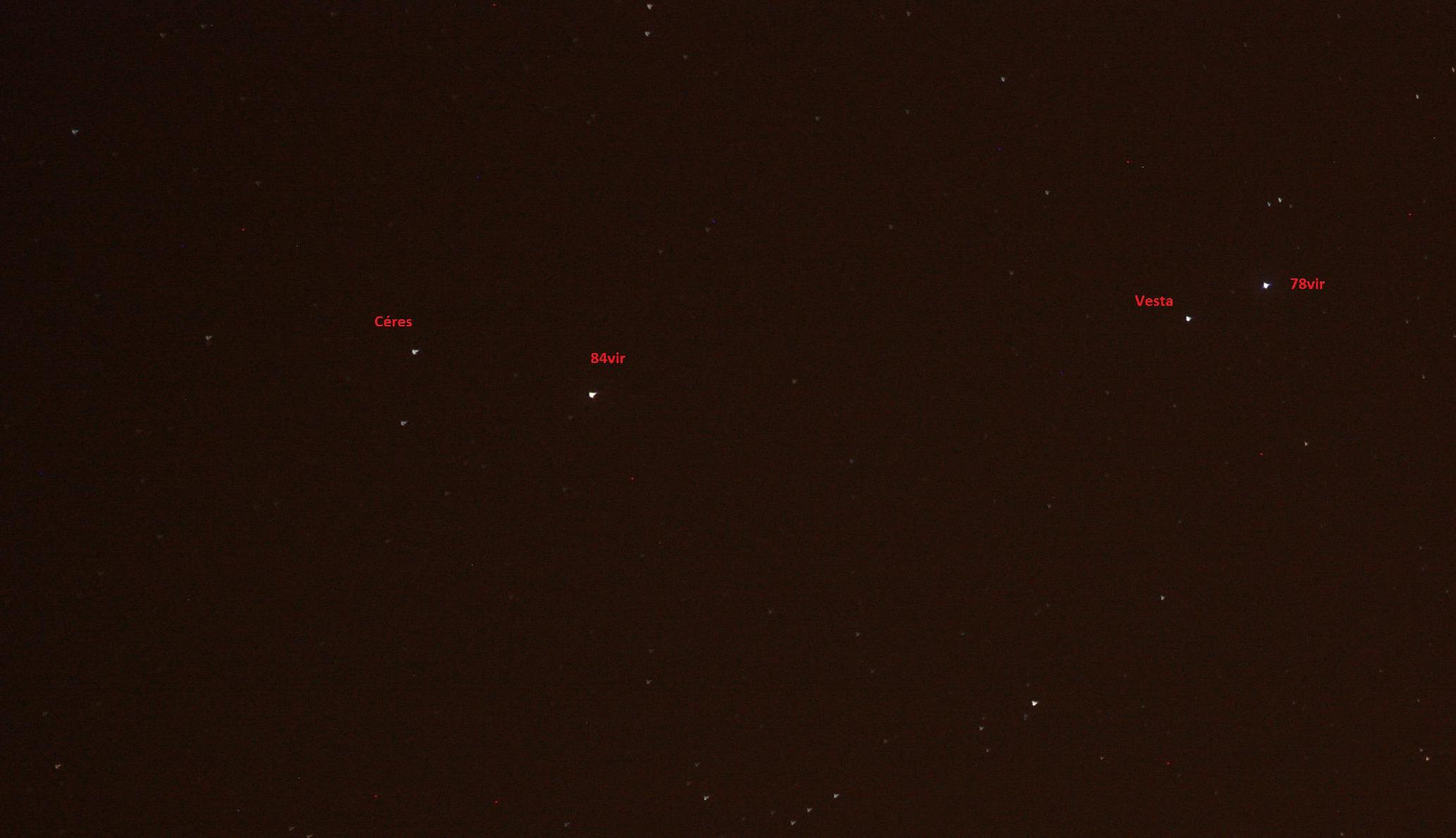 je pensais sortir 20 minutes pour photographier céres et vesta depuis mon cabanon : mise en station déjà faite, petite focale de 200mm, goto, 220V, ordi à la maison à 10m avec stellarium... bref une broutille à faire.