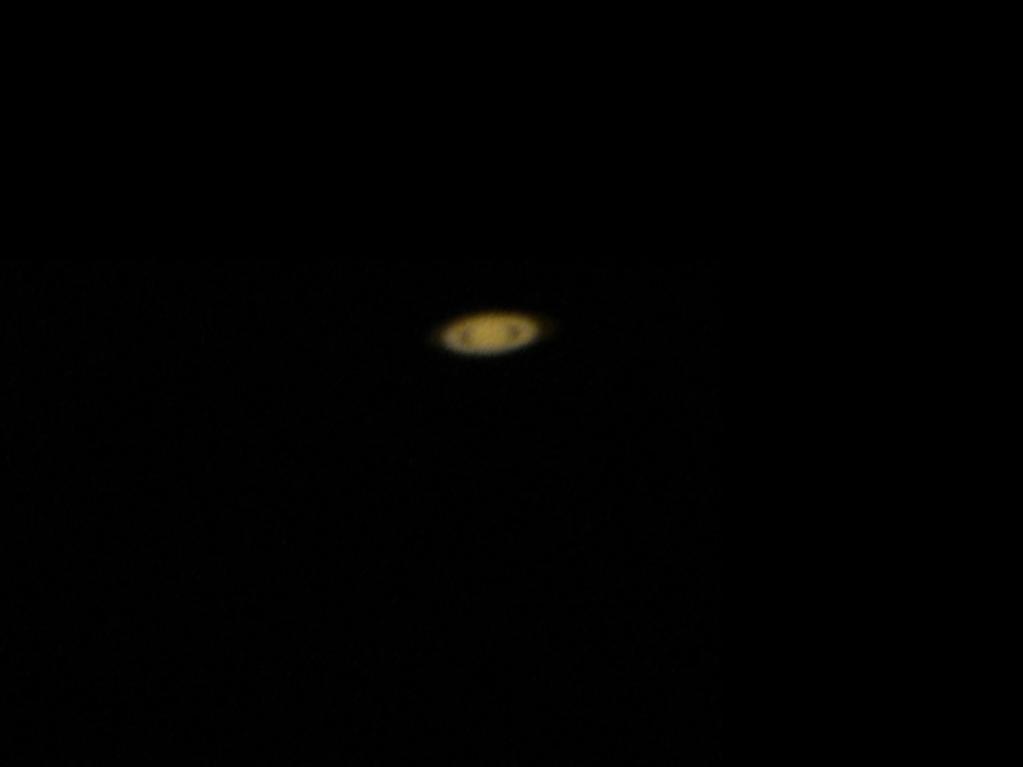 - Saturne, les anneaux bien détachés de la planète. Je pense même avoir vu leur ombre sur la couche nuageuse de Saturne. J'en ai profité pour garder un petit souvenir avec mon petit appareil photo. La qualité de l'image et de la vidéo ne sont pas top vu que ce n'est pas du matériel adapté pour (appareil photo Coolpix S225). Juste par envie tout simplement. Les puristes en imagerie astronomique seront déçus et décrieront la mauvaise qualité du rendu. Mais je rappelle, l'appareil photo n'est pas adapté à l'astrophotographie mais alors là pas du tout. C'est déjà limite pour les photos en nocturne (beaucoup de bruit) alors quelque chose d'aussi pointilleux que les photos du ciel, il n'y a pas de miracle à attendre.