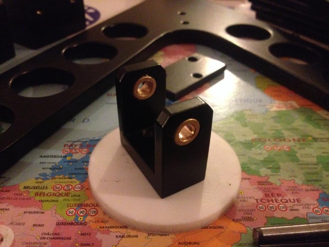 voici un des 3 berceaux , en son centre réside des bagues de cuivre avec 6mm de diamètre intérieur pour 10 exterieur le tout traversé par une goupille de 6mm également ,la goupille est freiné par une vis pointeau .