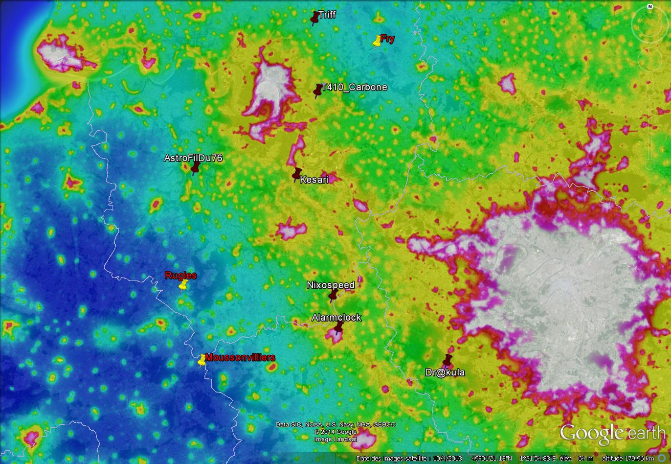 Je me suis amusé à calculer notre barycentre à tous, c'est à L'Aulnaie dans le 27 entre Evreux, Gaillon et Vernon, pas terrible pour observer niveau PL.