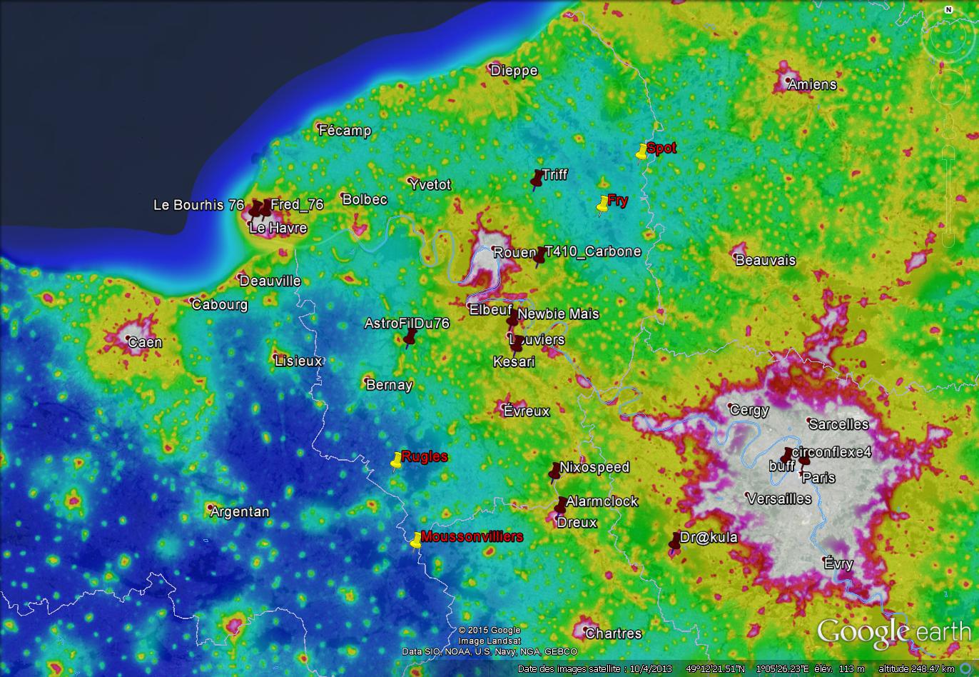 Effectivement il y a une zone un peu plus claire sur la carte AVEX entre Saint-Léger et la Boissière-école. Tu connais un site sans éclairage public et dégagé?