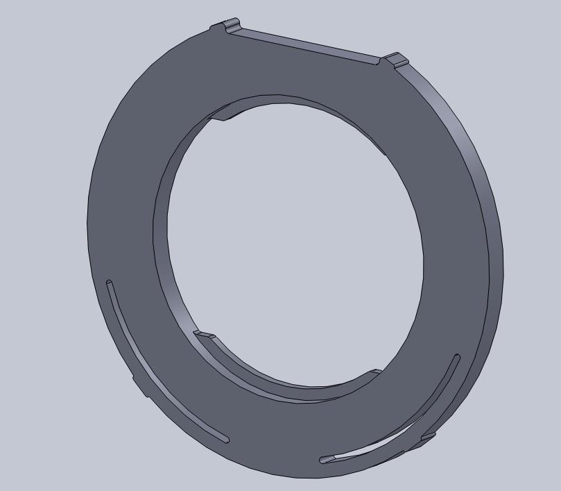 En ce qui concerne les pattes ressort du système clip, il faut faire attention à ce que la flexibilité du plastique, plus grande que celle de l'alu, donne encore assez de pression pour tenir la rondelle clip dans le logement du boîtier. Je pense que ce serait bien de les épaissir un peu et de les faire aussi déborder un peu sur l'extérieur pour forcer la pression.