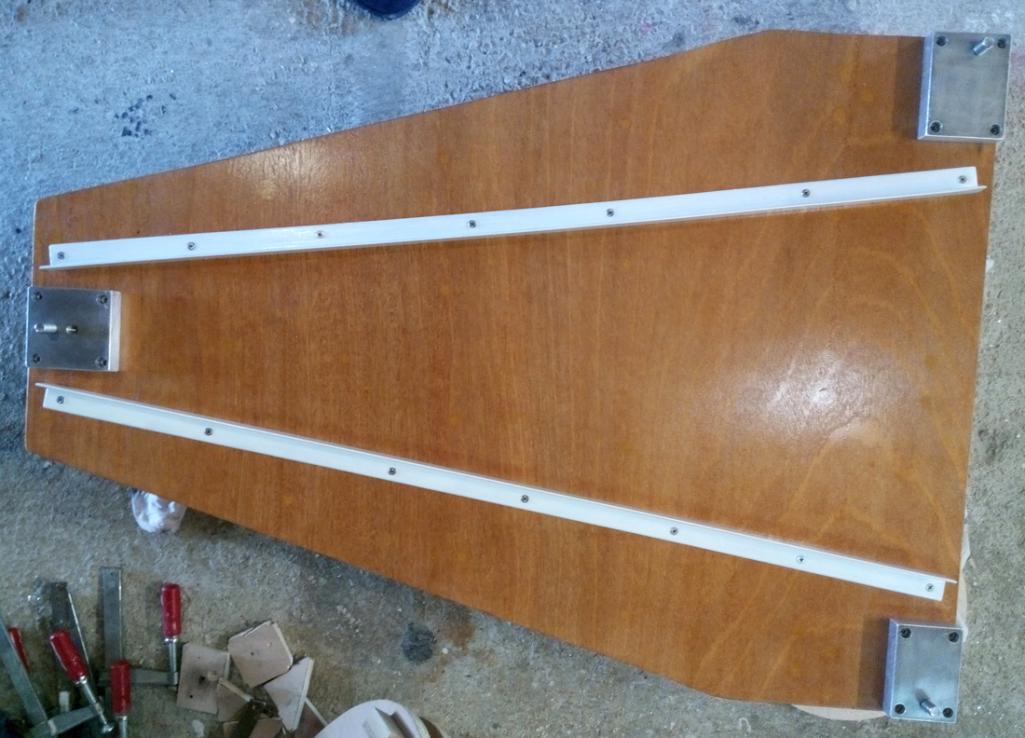 Mais, car il y a quand même une toute petite astuce, le support à roulette (la plaque alu de 15 mm d'épaisseur) va être vissé sur les 3 triangles, alors ça va quand même rigidifier le tout.
