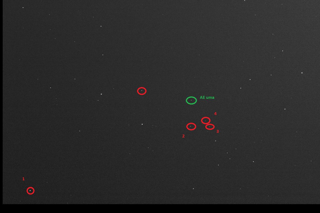 - je trouve a l'oculaire ma cible , et grace au carte que je me suis sorti, arrive a cadrer de sorte a avoir Wuma, ainsi que 4 ou 5 etoiles que je pourrais utiliser pour mesure la variable.