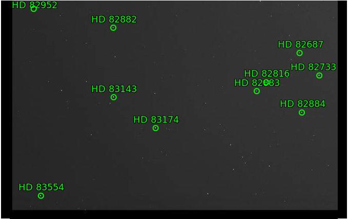 je demonte, l'eos, rentre a la maison, telecharge els images. la MAP est suffisante, et j'e cosntate qu'avec des poses inferieures a 12 sec, je ne sature aucune de mes etoiles poru faire des mesures, et ttoutes les etoiels reperes que j'avais sotn visible.