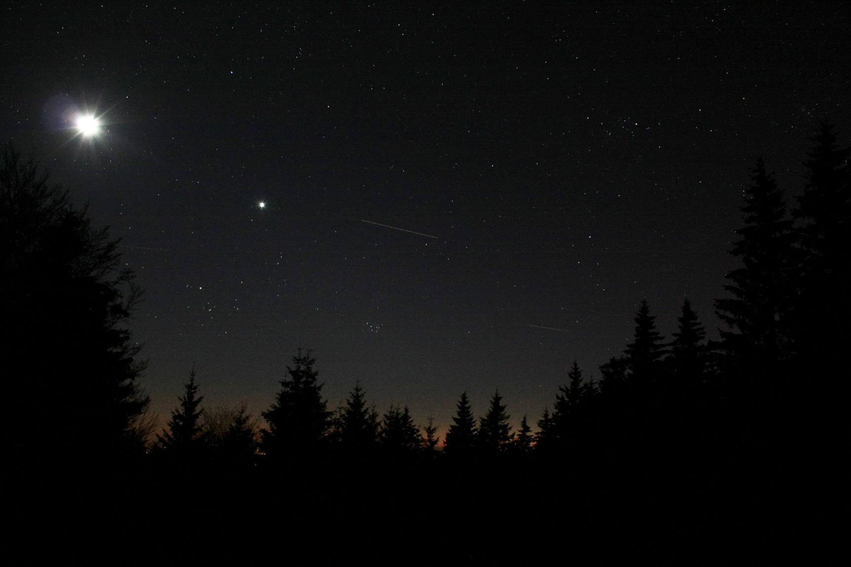 divers Pleiades, vénus et la lune