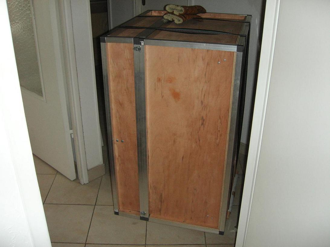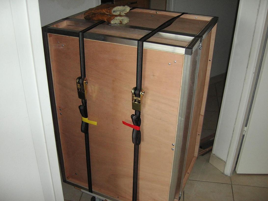 Aprés ça je me suis dit, je vais fixer des roulettes à demeure, que nenni! car comme vous l'avez compris, tout est calculé au millipoil, de façon à entrer dans le placard en profondeur, passer par la porte de la chambre en largeur, la porte d'entrée sur la tranche, dans l'ascenseur tel quel et enfin dans le coffre au centimètre prés!