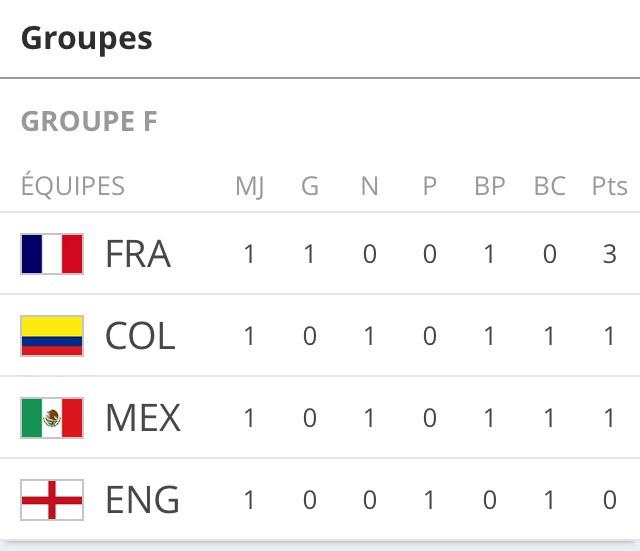 Suite à ce premier round, la France prend seule la tête du Groupe F :) :