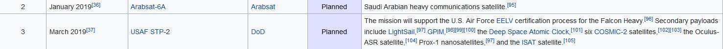 Pour Falcon Heavy, on peut se consoler avec 2 tirs prévus pour l'instant: