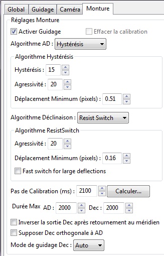 phd2 configuration pour AVX et 9x50/zwoASI120