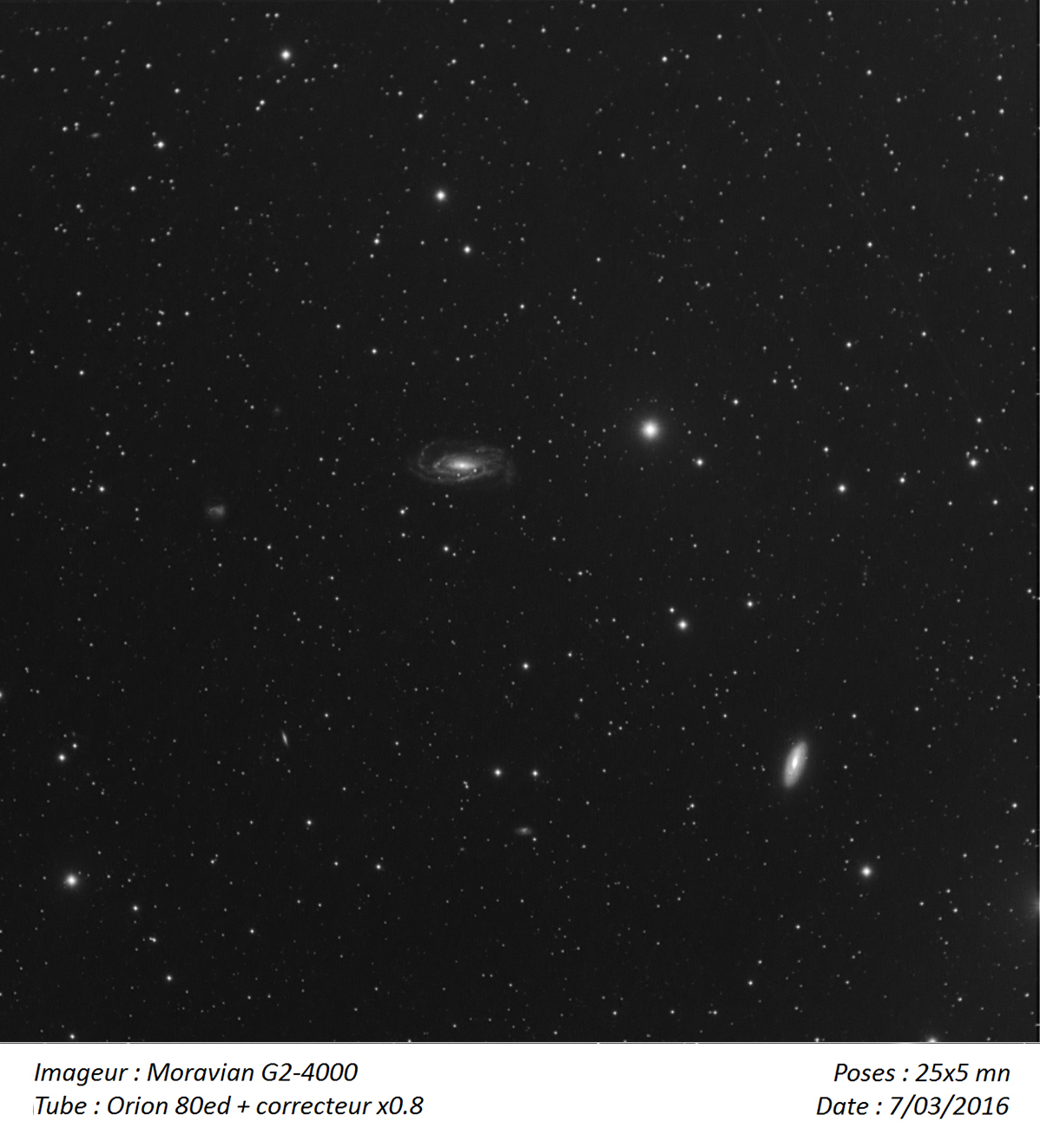 PS : guidage en parallèle avec le C8 à F6.3 et la PL1-m, petit champ et pas beaucoup d'étoiles guides... j'ai utilisé celle qui est en bas de NGC5033 sur l'image.