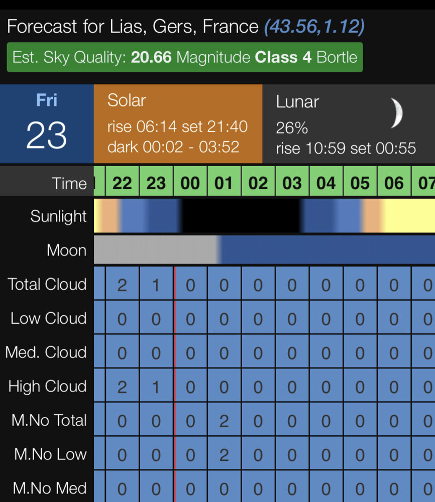 Bonjour à mon à tous, je vais faire un petit tour à Lias ce soir ! J’espère retrouver quelques autres amateurs ! Très peu de belles nuits en ce moment donc faut en profiter ! 😃