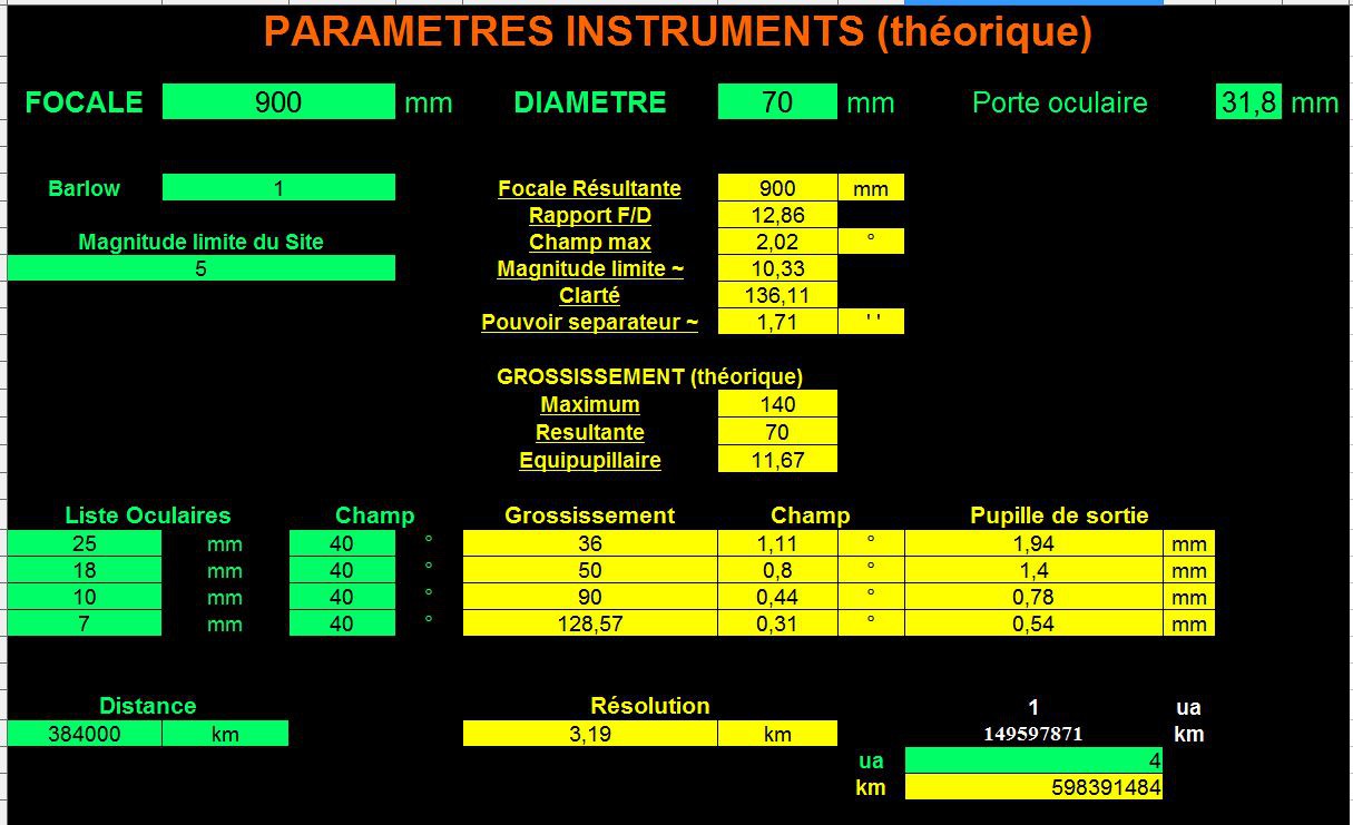 Parametres de vos lunette (teléscope)