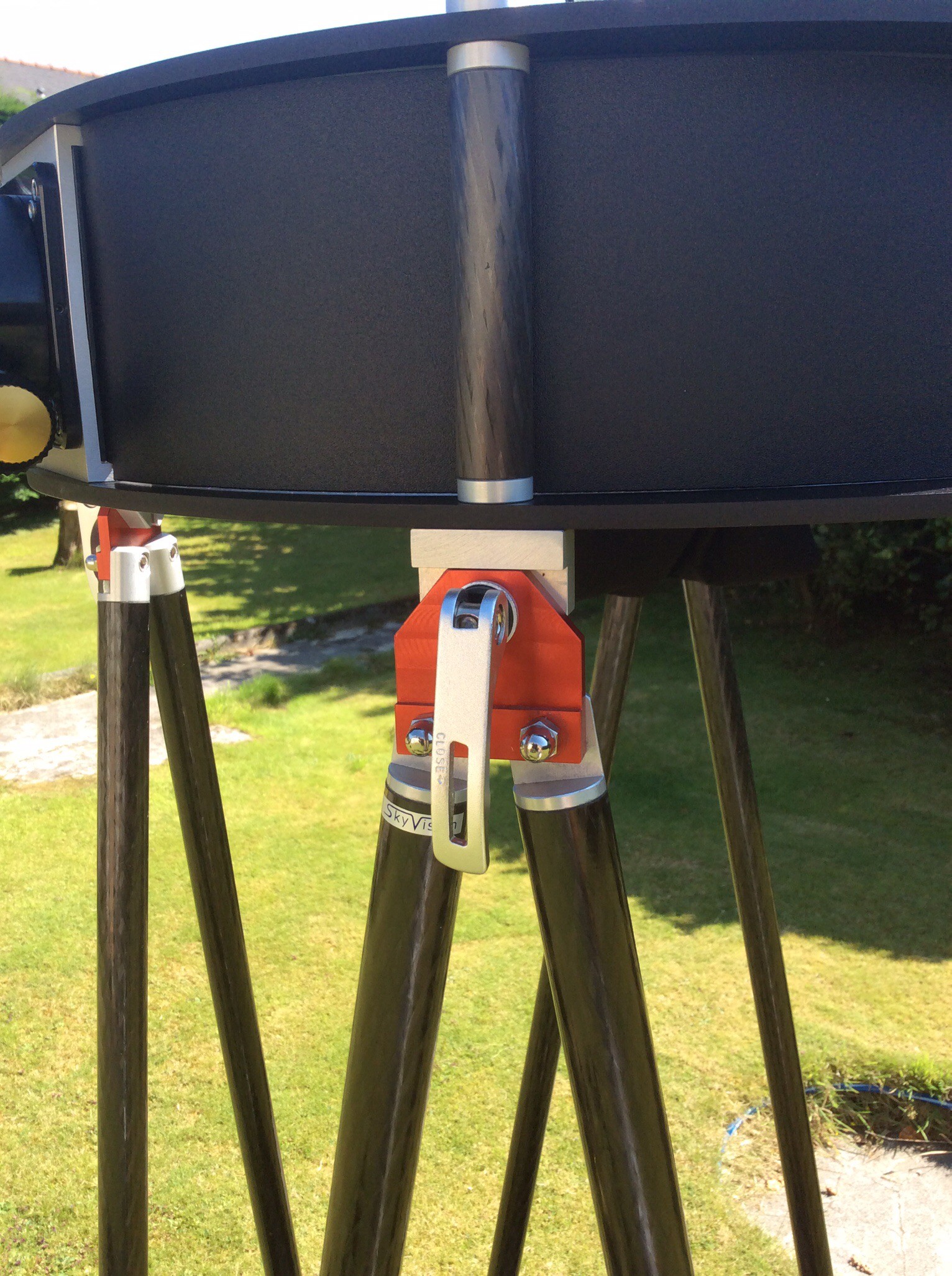 Concernant la gestion des vibrations et surtout des micro-vibrations notamment à très forts grossissements, pour l'instant je ne peux rien en dire car je n'ai pas encore eu l'occasion d'effectuer une observation prolongée à de tels grossissements. Ceci dit c'est un point sur lequel j'ai été sensibilisé sur mon dernier scope qui était bois-carbone. Un des montants latéraux de la base de fixation de mon PO, s'était très légèrement décollé. Avant de m'en apercevoir je n'arrivais pas à avoir une image stable à forts grossissements. L'observation de Jupiter est déjà délicate et là je voyais les plus fins détails s'estomper notamment dans les bandes. Par hasard à un moment j'ai dû poser ma main sur ce montant et me suis rendu compte que pendant le laps le temps où j'exerçais une pression sur ce montant, l'image se figeait. Plus tard je vis qu'on pouvait glisser une fine feuille de papier entre les 2 montants. J'ai fixé par vis le montant incriminé, annihilant ce petit espace d'air source de microvibrations. C'est pour cela que je pense que la qualité de l'assemblage, au delà de l'association bois carbone ou carbone alu, est un point important pour lutter contre l'apparition de ce type de phénomènes. Maintenant avec ce type de scope, il faudrait solliciter DarkD qui possède ce même modèle depuis plus longtemps que moi et qui, en plus de l'observation visuelle pratique la photo, pour connaitre la sensibilité de l'engin aux vibrations.