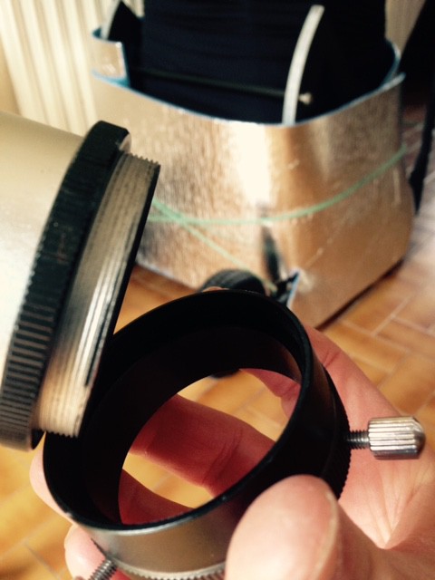 Mais et surtout le serrage est largement insuffisant surtout avec un oculaire lourd comme l'ES 17mm, et il m'est arrivé par 2 fois de rattraper au vol l'ensemble qui commençait à vouloir jouer les hélices d'avion, à cause d'un serrage insuffisant.