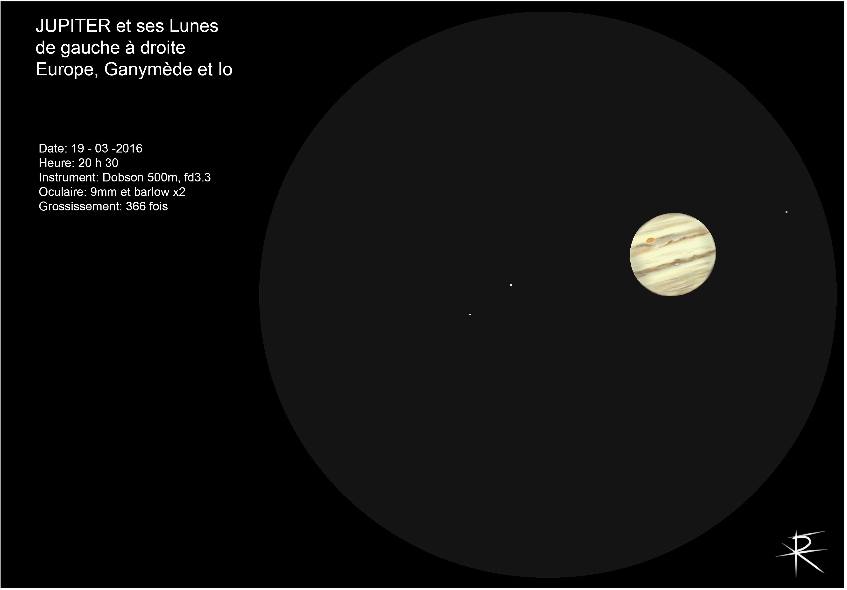 planète Jupiter, Europe, Ganymède et Io du 19 mars