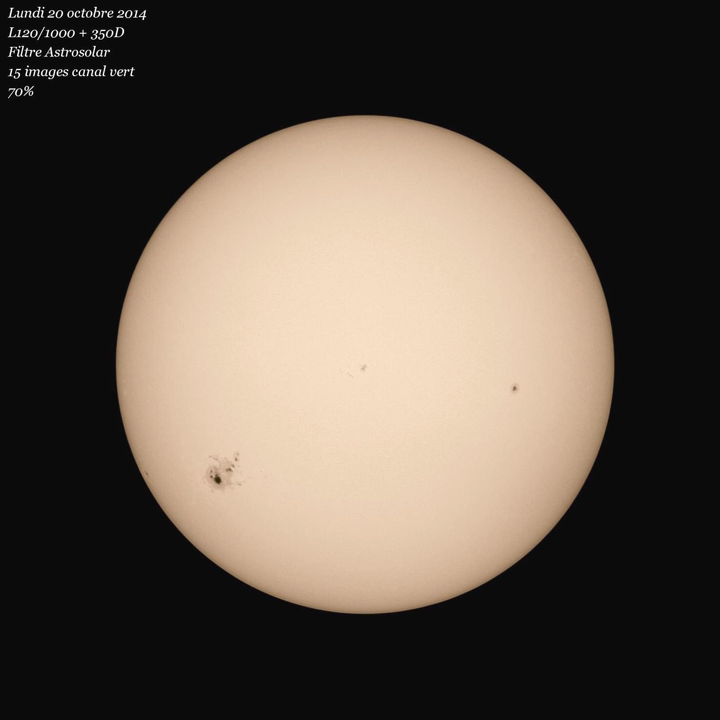 Plus précisément, pour qu'une tache solaire soit visible à l’œil nu (avec filtre, pour les néophytes, Danger), il faut quand même qu'elle ait atteint une taille impressionnante.