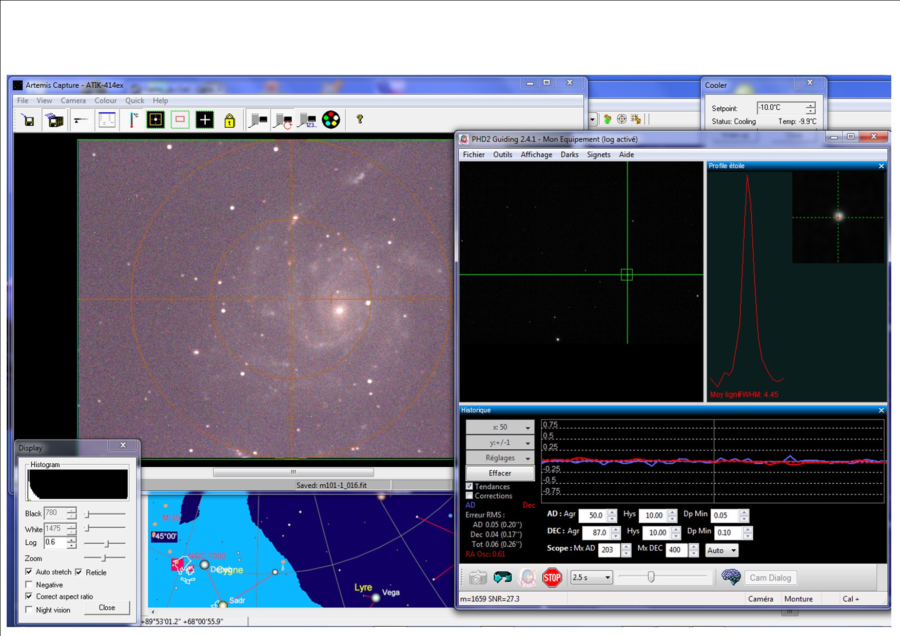 Très impressionnante ta courbe de guidage, j'ai cru à un guidage sur un pixel chaud avant de réaliser que l'échelle était en pixel et non en arcsec ;) .