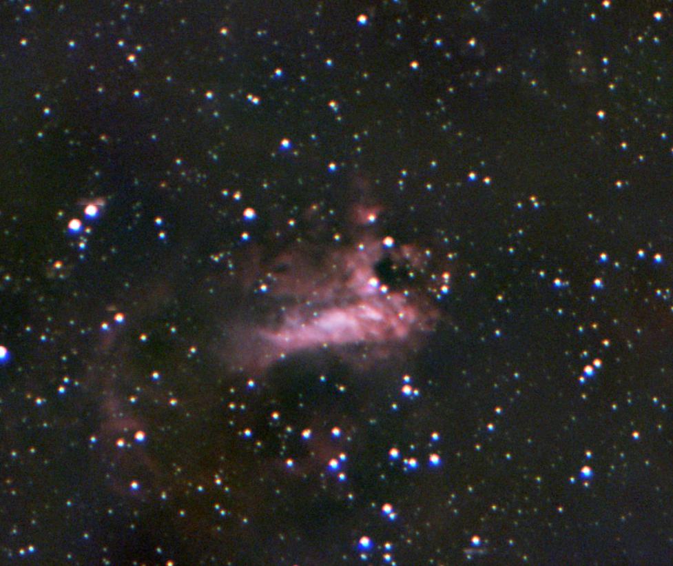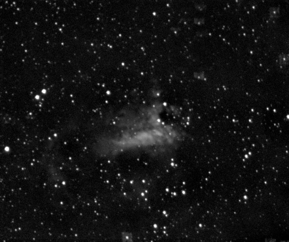 Retour sur M17 cette nuit, à la faveur d'une éclaircie, malgré la proximité de la pleine lune ! Je ne sais pas pourquoi, mais l'image est sortie en noir et blanc (il ne me semble pas avoir sélectionné l'enregistrement en RAW, enfin je ne pense pas). En tous cas le script de bayerisation de PixInsight m'a quand même laissé l'image en noir et blanc, étrange.