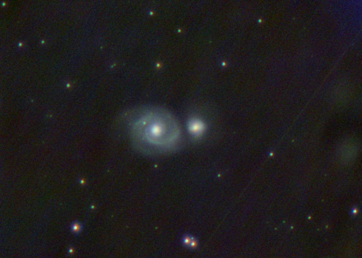 Voilà d'abord M51 ! Capture de 3000 secondes avec temps d'exposition de 5 secondes.