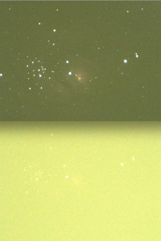 En attendant, et pour finir le massacre, voici M16 :be: Bien entendu la nébuleuse est invisible. Clairement, il faut éviter de shooter des étoiles brillantes avec un tel chromatisme. Donc je vais me concentrer sur des nébuleuses dans des endroits sombres ou des galaxies.