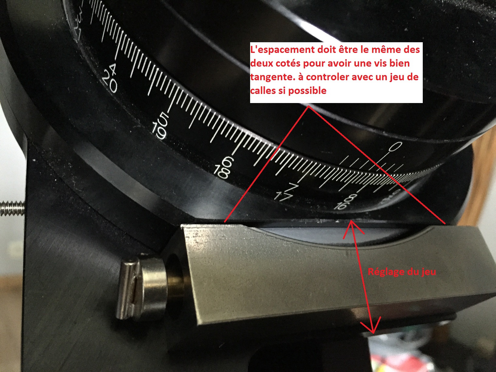 Pour le réglage avec la vis tangentielle et les deux supports qu'il faut mettre à la bonne distance..., là autant te le dire, tu m'as perdu mais je vais creuser un peu tout ça.