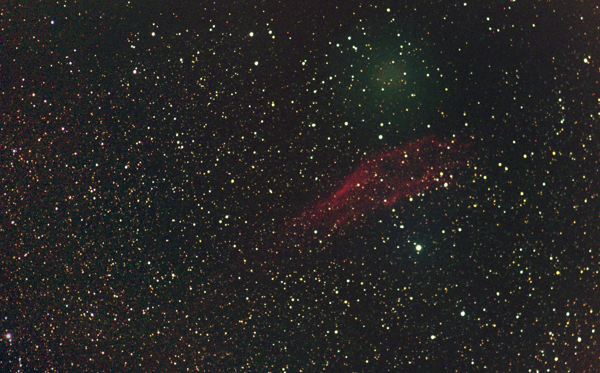 Y a du couic couic, du ziiippp, du cadeau de noel, de l'ethos 13, du pentax et du souffle d'étoile épaulé. Je vous parle pas du LB400, d'ebay et de tenerife. Bref y avait du café et du chocolat et -3° au final. Sqm de début à 21, fin à 21,3. California et holmes fleurtaient ce soir là, nous les avons espionnés dicrètement à la jumelle. Holmes dépasse les 3° de champs, la plus grosse comète de tout les temps.
