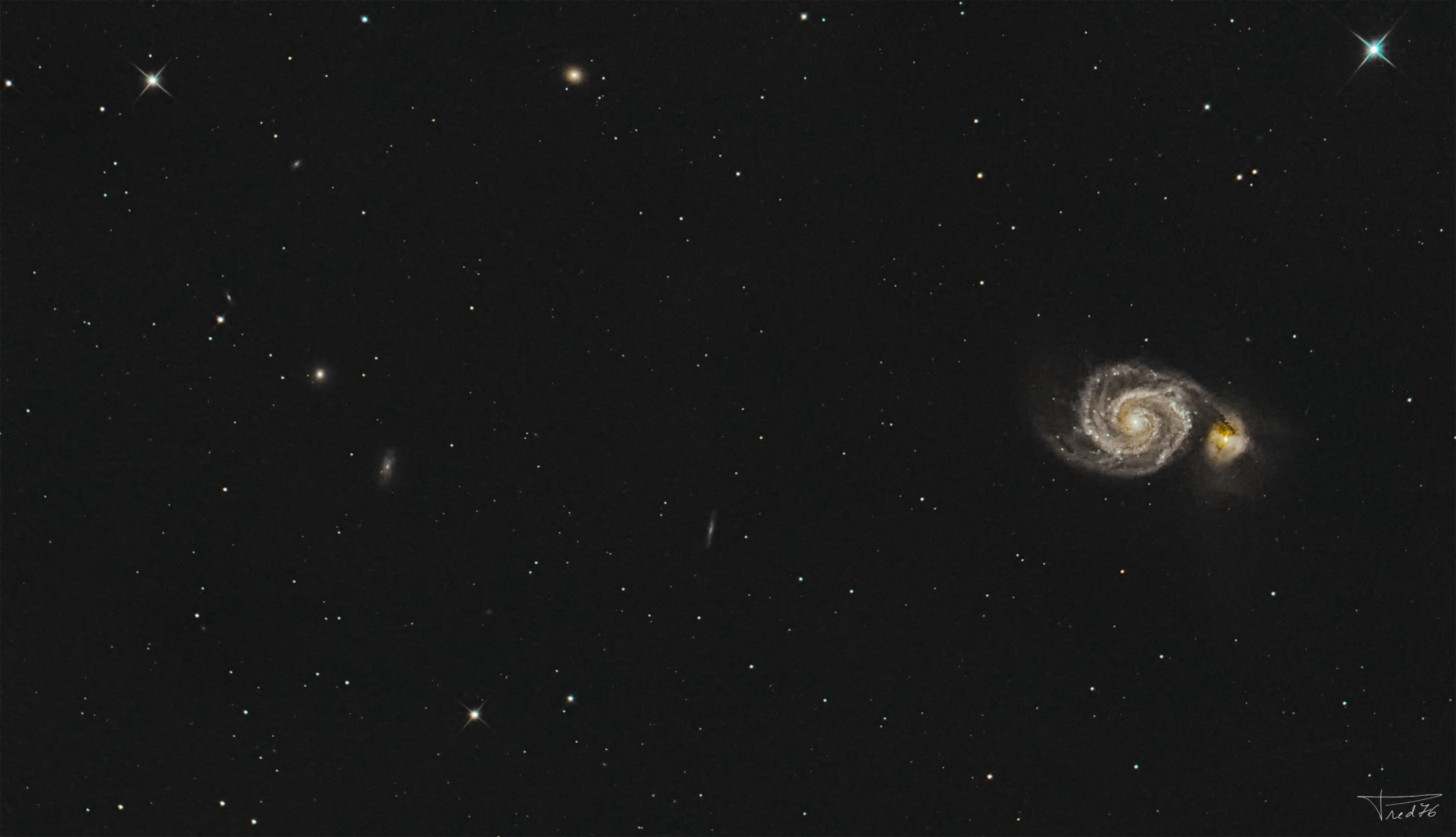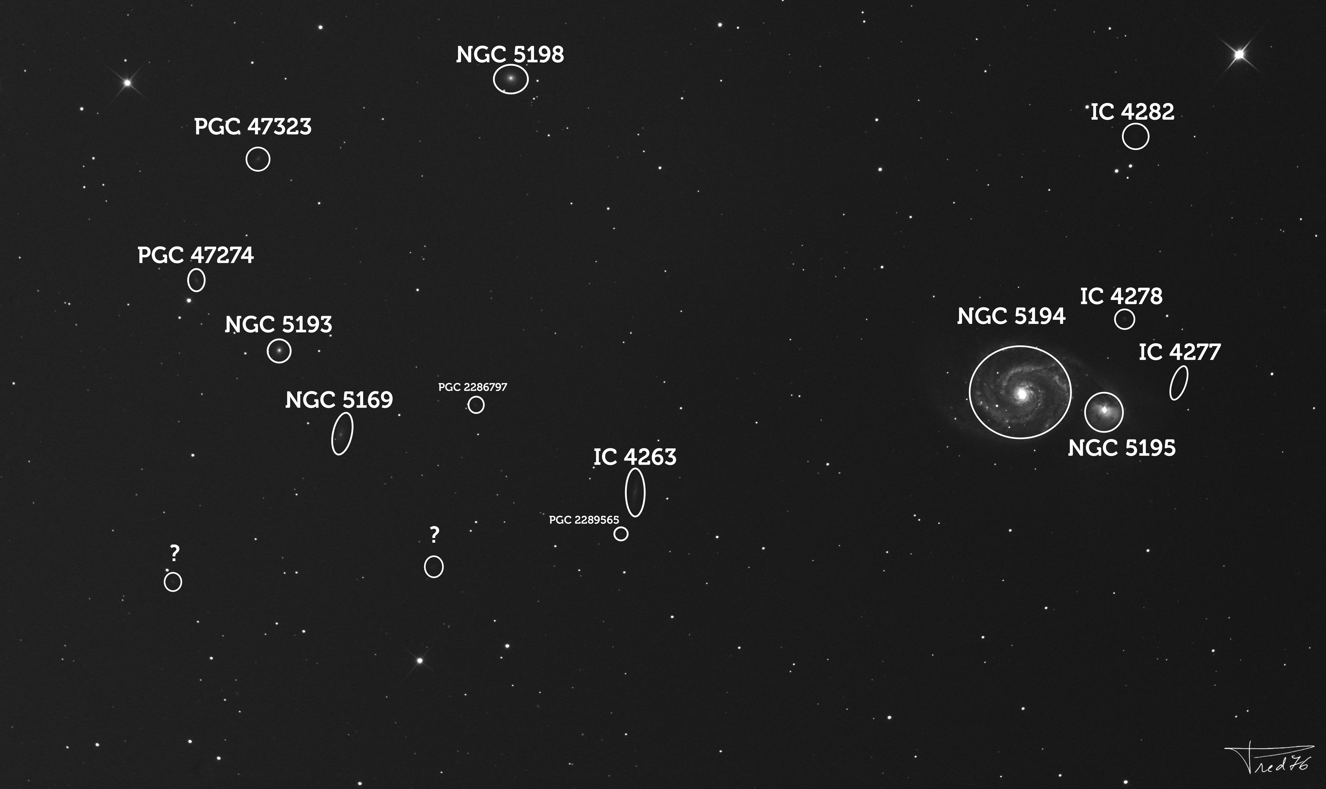 Voici un autre traitement de l'image N&B montrant les NGC autours de M51 :