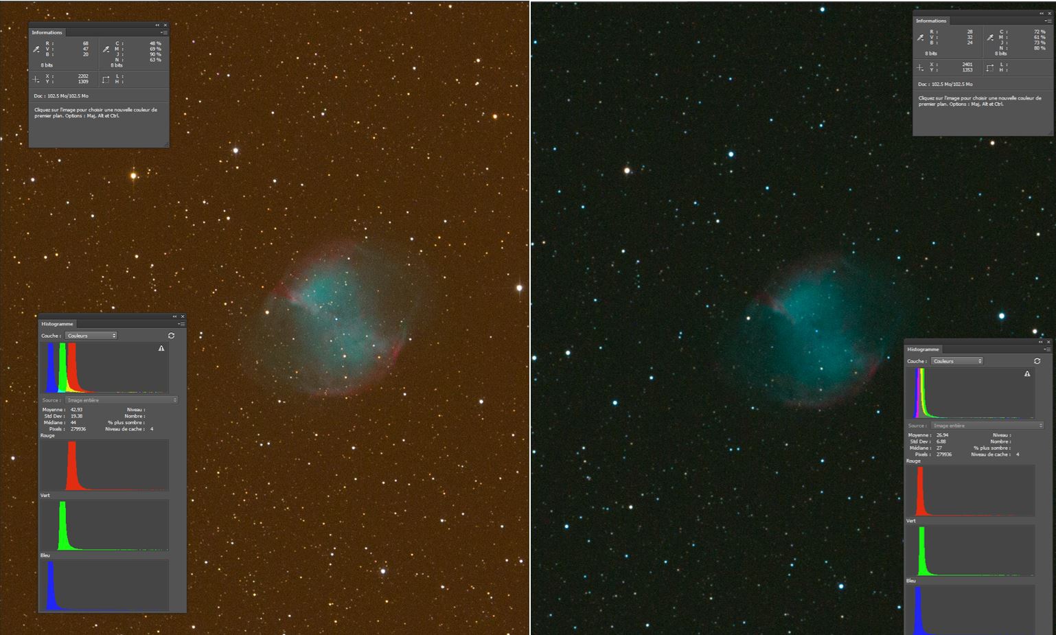 comparaison brute avec et sans filtre anti pollution Idas-LPS-D1 sur m27